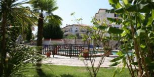 песчаный пляж в 10 м (лежаки и зонтики — бесплатно)