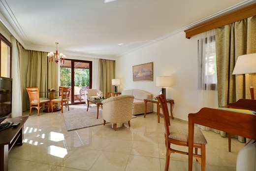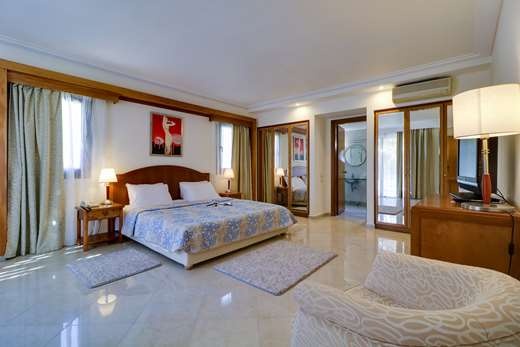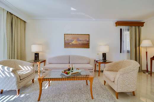 Расположены в нижней части отеля в основном здании или бунгало, спальня с двуспальной кроватью, гостиная комната с диваном (раздвижная дверь между комнатами), 2 ванные комнаты (одна с гидромассажной ванной, вторая с душевой кабиной), балкон или терраса, вид на море;