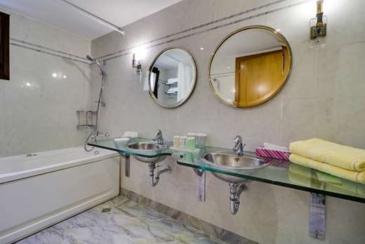 Расположены в нижней части отеля, спальня с двуспальной кроватью, гостиная комната с диваном (раздвижная дверь между комнатами), 2 ванные комнаты (одна с гидромассажной ванной, вторая с душевой кабиной), терраса, персональный бассейн (глубина бассейна 1,50 м), также есть 2 номера suite с общим бассейном (44 м²);