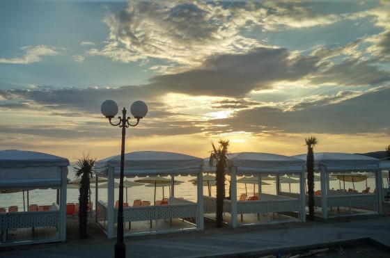 Песчаный пляж в 10 м, прямо перед отелем (через дорогу)