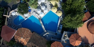 Номера и люксы отеля располагают балконом с видом на бассейн, сад или гору Афон. В числе удобств кондиционер и спутниковое телевидение.