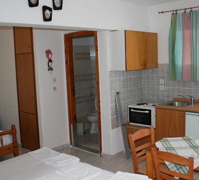 Всего 15 апартаментов. В номерах: кондиционер, телевизор, холодильник, небольшая кухня со всей необходимой утварью, электрическая плита (2 конфорки) без духовки, ванная комната (душ), балкон/терраса.