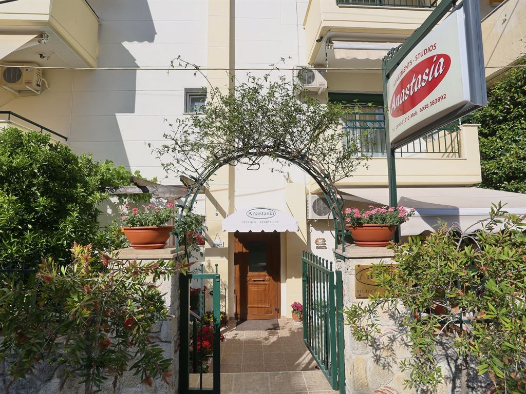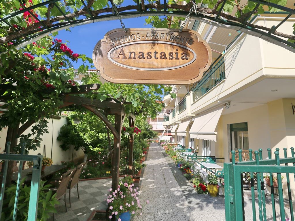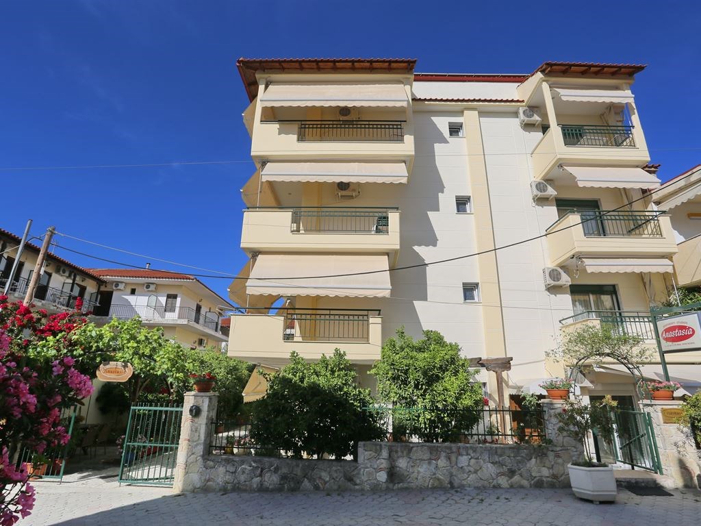 Апарт-отель Anastasia находится в поселке Ханиоти, в 50 м от его оживленного центра с тавернами, магазинчиками и ночными клубами, в 86 км от международного аэропорта города Салоники. Пляжи Фурка, Посиди, Сивири расположены в нескольких минутах езды на автомобиле.