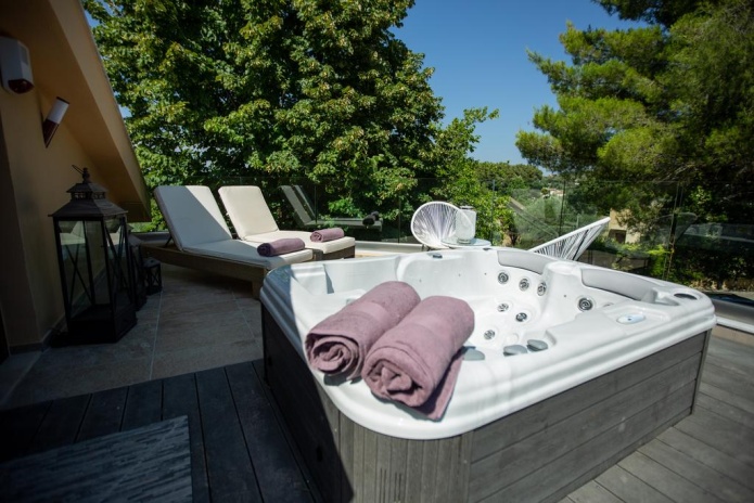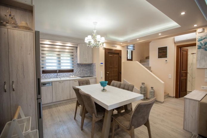 Двухэтажные виллы Anemone находятся на курорте Сани. К услугам гостей терраса, собственный балкон, ванная комната с джакузи, гостиный уголок, обеденная зона и кухня с посудомоечной машиной и духовкой.