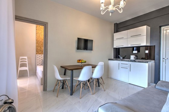 Всего 29 номеров: Deluxe (18-24 кв.м), Deluxe Family 2-Room (30 кв.м), Suites (40 кв.м). Интерьеры выполнены в эко-стиле с использованием цветовой гаммы и материалов, близких к природе. Особое внимание уделено деталям: арома-меню для каждой комнаты, меню подушек для комфортного сна. В номерах: оборудованная кухня (2 керамических конфорки, электрочайник, посуда), кондиционер, телевизор LCD, спутниковое телевидение, российские каналы, телефон, сейф, холодильник/мини-бар (за доплату), телефон, бесплатный Wi-Fi интернет, душевая, банный набор, фен, детская кроватка (по запросу, бесплатно), утюг, балкон/веранда. Deluxe Double Room Двуспальная кровать. Дополнительная кровать для 3-го человека – раскладная. Deluxe Family В одной комнате – диван-кровать, во второй – двуспальная кровать или 2 односпальные. 1 телевизор, 1 кондиционер. Suite 3 комнаты. В одной комнате – диван, в 2-х спальнях – двуспальная и 2 односпальные кровати. 1 телевизор, 1 кондиционер.