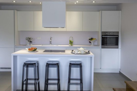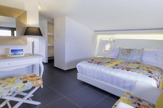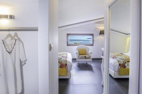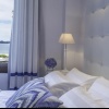 Panorama Suite (95 кв.м) 2 этажа. На верхнем этаже – главная спальня с большой двуспаль-ной кроватью, гостиный уголок, большие окна с панорамным видом на море, душевая; на первом этаже – гостиная и кухня открытой планировки, спальня с 2-мя односпальными кроватями, душевая. Большая веранда с панорамным видом на море.