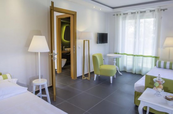 Prestige Suite with Private Pool (60 кв.м) Расположены на первом этаже (Ground Floor). Гостиная и кухня открытой планировки, 2 спальни (одна с двуспальной кроватью, вторая с 2-мя односпальными кроватями), ванная комната с душем. Частный бассейн, патио (25 кв.м.).