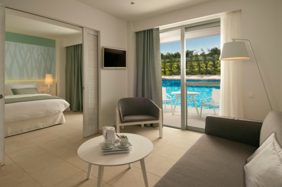 Junior Suite Sharing Pool Отдельная гостиная зона, за раздвижной дверью – спальня с двуспальной кроватью, диван-кровать. Прямой выход к бассейну.