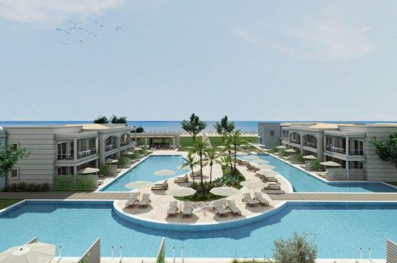 Deluxe Suite Private Pool Двухуровневые сюиты. Вид на море. На нижнем этаже расположена гостиная, WC, терраса с частным бассейном; спальня на верхнем этаже, двуспальная кровать, ванная комната. Диван-кровать и кресло кровать. 2 телевизора, кофе-машина Эспрессо.