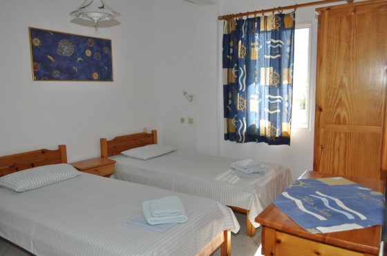 Всего в отеле 30 номеров. Double Rooms (25 кв.м), Triple Rooms (30 кв.м), Apartments (40 кв.м) В номерах: кондиционер, бесплатный Wi-Fi, кухонный уголок (с 2-мя конфорками, посуда), холодильник, ванная комната (душ), телевизор, балкон Double Room Двуспальная кровать, кухонный уголок. Возможное размещение: 2 взрослых. Triple Room Двуспальная кровать и одна односпальная, кухонный уголок. Возможное размещение: 3 взрослых Apartment Однокомнатный номер. Двуспальная кровать и 2 односпальные, кухонный уголок. Возможное размещение: 5 взрослых