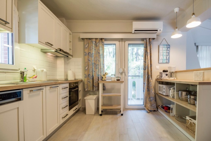 Виллы Ekatis Houses расположены в сосновом лесу на курорте Сани, в нескольких километрах от баров и ресторанов на пляже.