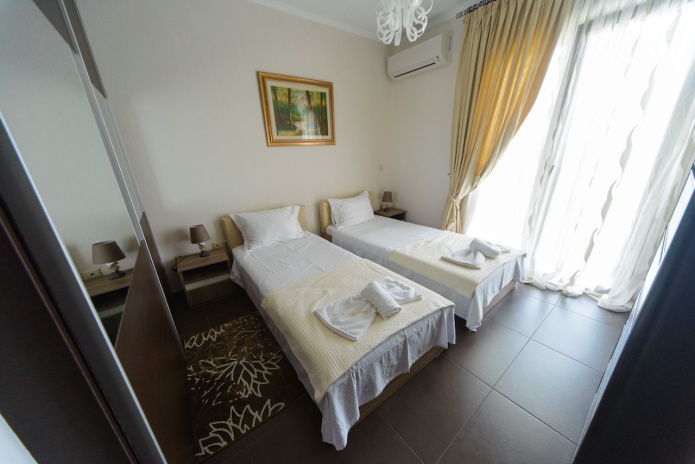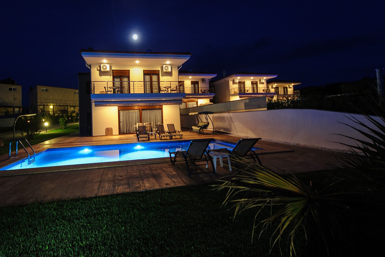 Виллы находятся в 500 м от центра курорта Ханиоти на полуострове Кассандра и в 900 метрах от пляжа. Расстояние до аэропорта города Салоники составляет 90 км.
