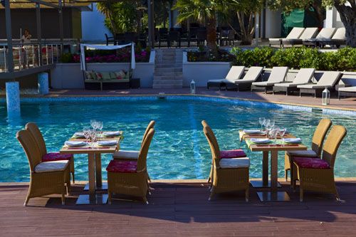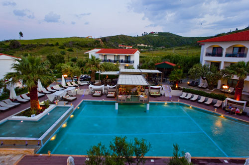Отель находиться между посёлками Ханьоти (1км) и Пефкохори (500 м), в 90 км от аэропорта «Македония» г. Салоники. Отель полностью отреставрирован в 2008 году. Состоит из 7 зданий.
