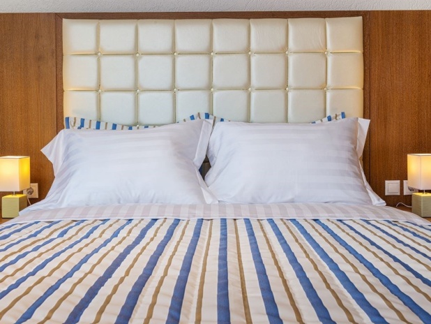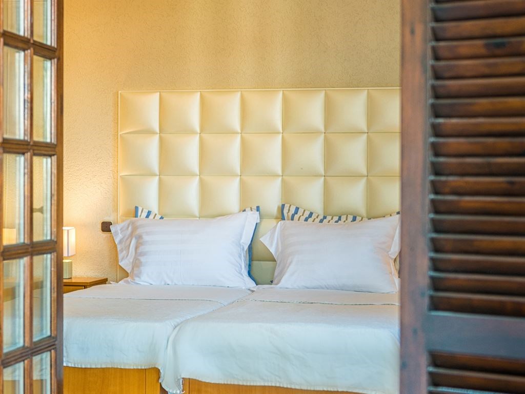 песчаный пляж в 10 м (лежаки и зонтики — бесплатно)