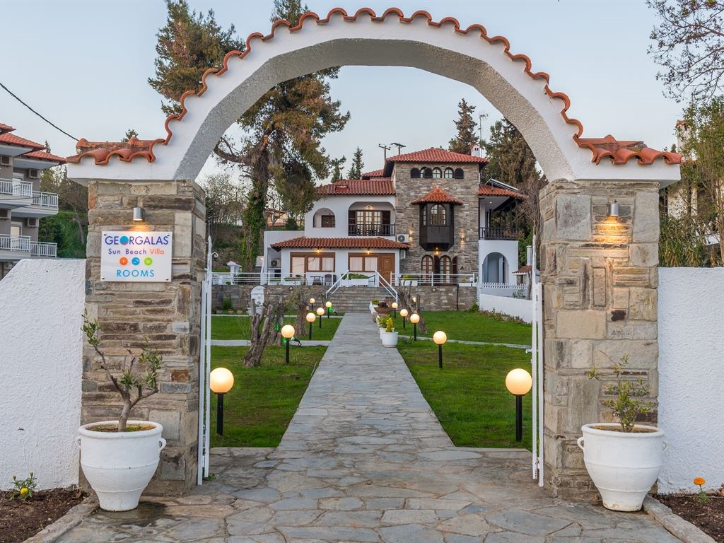 Вилла Georgalas Sun Beach находится у пляжа поселка Геопоника, в 3 км от центра Неа Калликратии и в 35 км от Салоников (25 км до аэропорта), рядом с международным выставочным центром HELEXPO. Поездка до Петралонской пещеры занимает 10 минут. До центра города Калликратия можно дойти пешком вдоль набережной. Автобусная остановка находится в 1 км от отеля.
