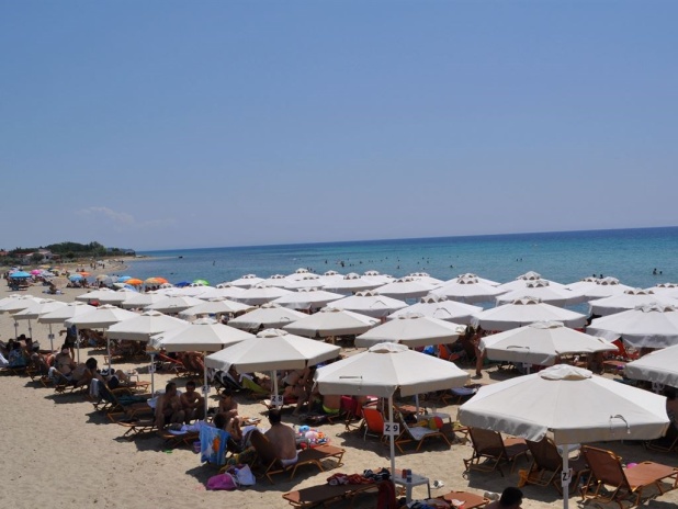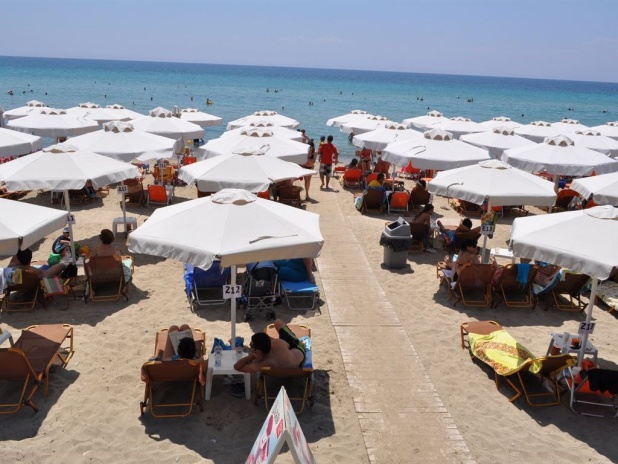 На пляже бесплатно предоставляются шезлонги и зонтики.