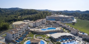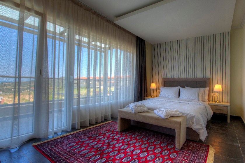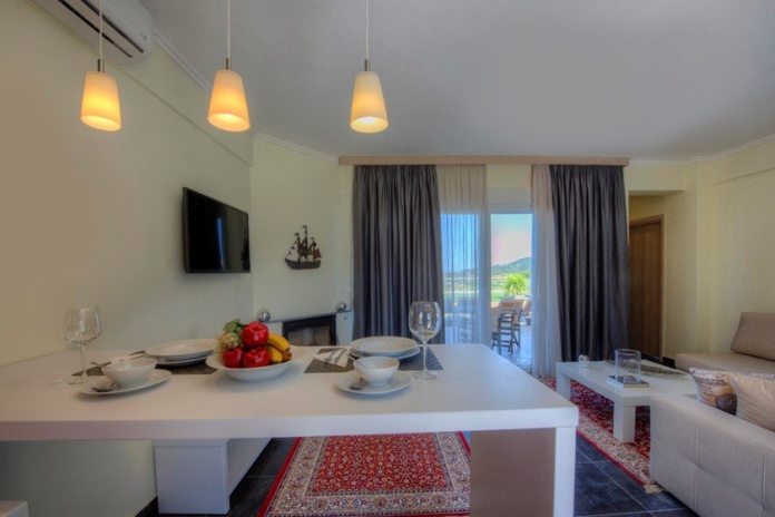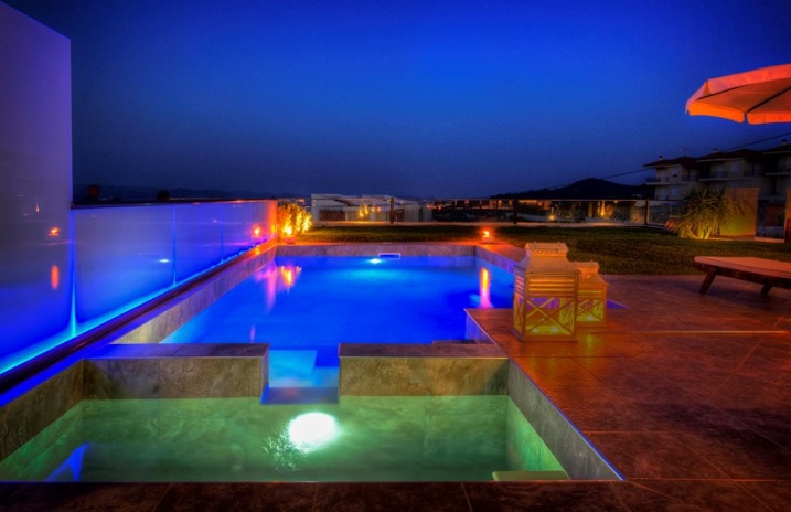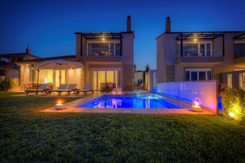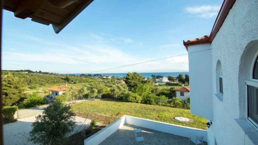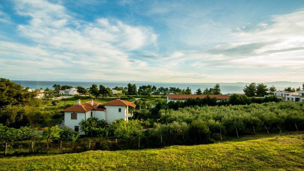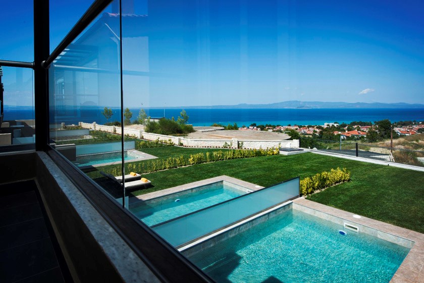 Вилла Grande расположена в поселке Ханиоти, в 500 м от его центра. Пляж Сани находится в 34 км от виллы, Афитос — в 18 км. Расстояние до города Салоники составляет 93 км.