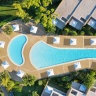 Номера расположены в одноэтажных бунгало, спальня с двуспальной кроватью, гостиная комната с диваном-кроватью, ванная комната с ванной и душевой кабиной с тропическим душем, меблированная терраса с садом и частным подогреваемым бассейном площадью 30 м², вид на сад, план номера, фото номера;