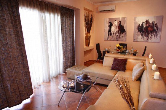 Апартаменты площадью 65 кв.м с террасой 20 кв.м. С террасы открывается вид на залив Торонеос и деревню Пефкохори.