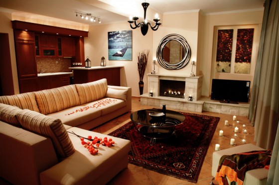 — вместительные шкафы, большие кровати с удобными матрасами, кондиционер во всех комнатах, телевизор LED 42”; разнообразная мебель, уютные ковры, обеденные столы и кофейные столики; камин.