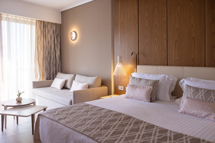 - 89 номеров Deluxe Sea View (37-39 м², макс. 3+1 или 2+2).