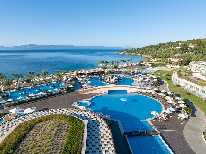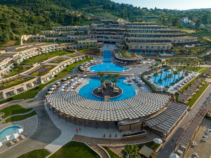 В отеле 300 номеров (236 номеров обращены к заливу Торонеос, 48 номеров с частным бассейном с морской водой):