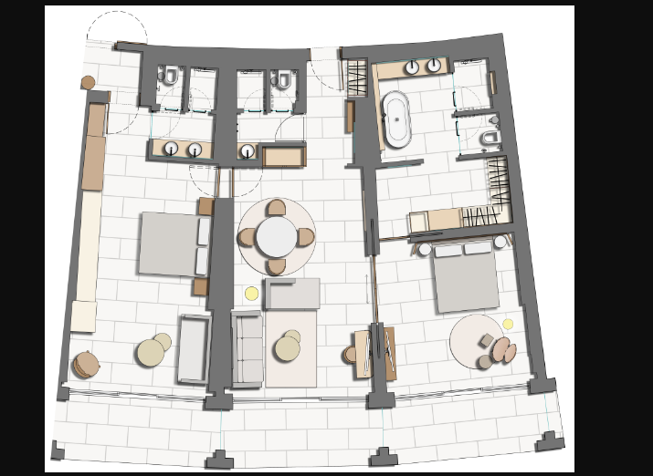 Номера расположены на цокольном этаже восточного крыла, 2 спальни с двуспальными или 2 односпальными кроватями, гостиная комната с диваном, гардеробная, 2 ванные комнаты, веранда, частный садик, вид на море/бассейн, привилегии Miraggio Club, план номера;
