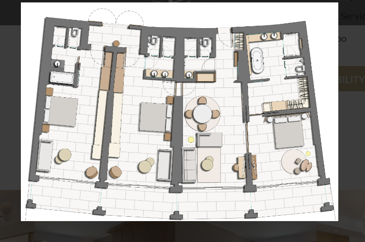 Номера расположены на цокольном этаже восточного крыла, 3 спальни с двуспальными кроватями, гостиная комната с диваном, гардеробная, 2 ванные комнаты, веранда, частный садик, вид на море/бассейн, привилегии Miraggio Club, план номера;