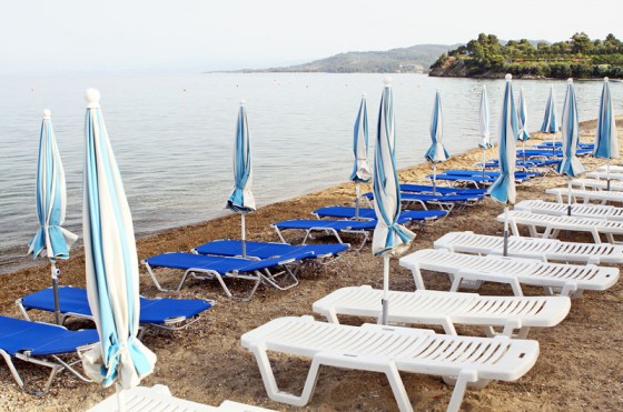 Песчаный пляж, лежаки и зонтики - бесплатно.
