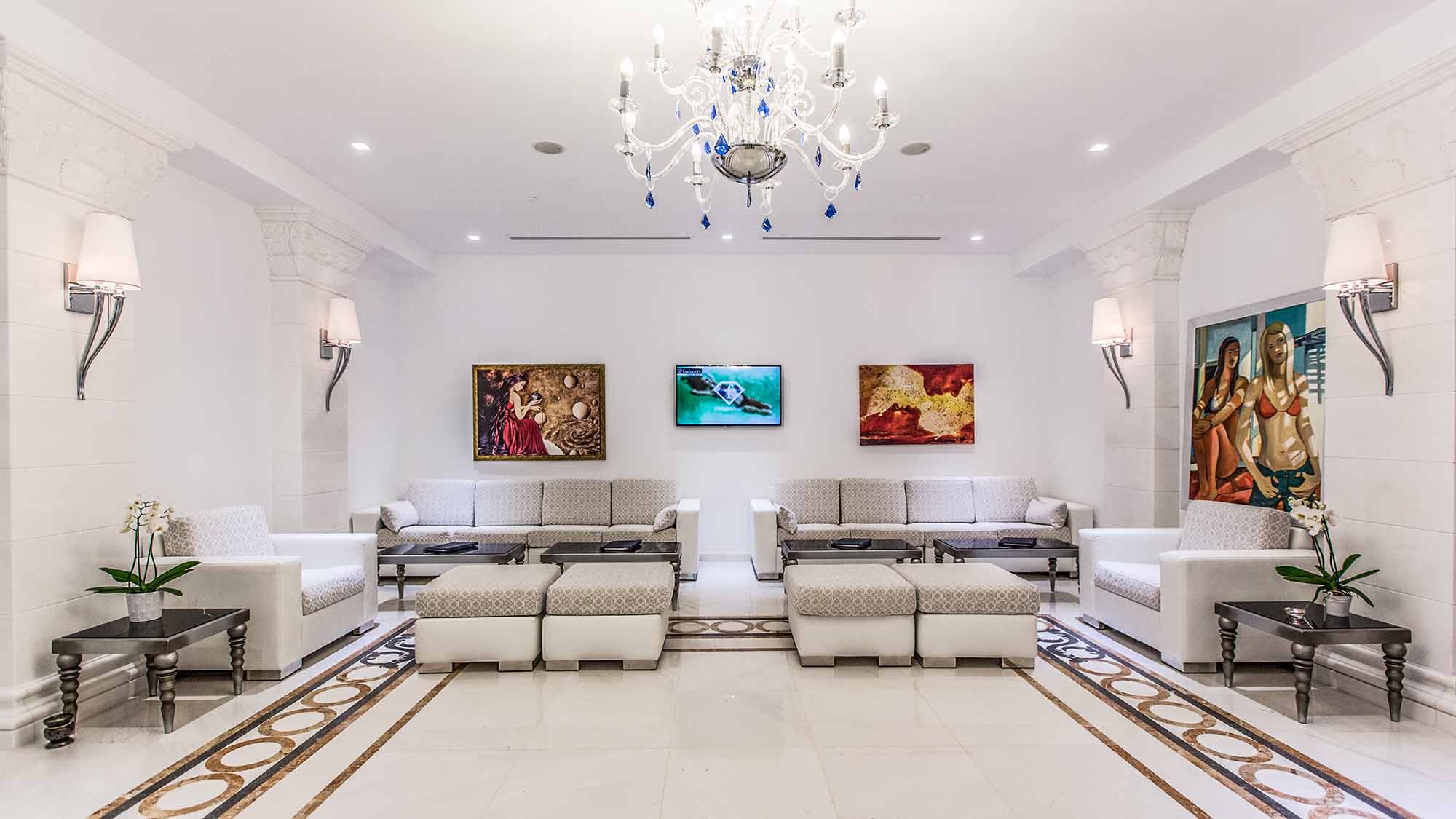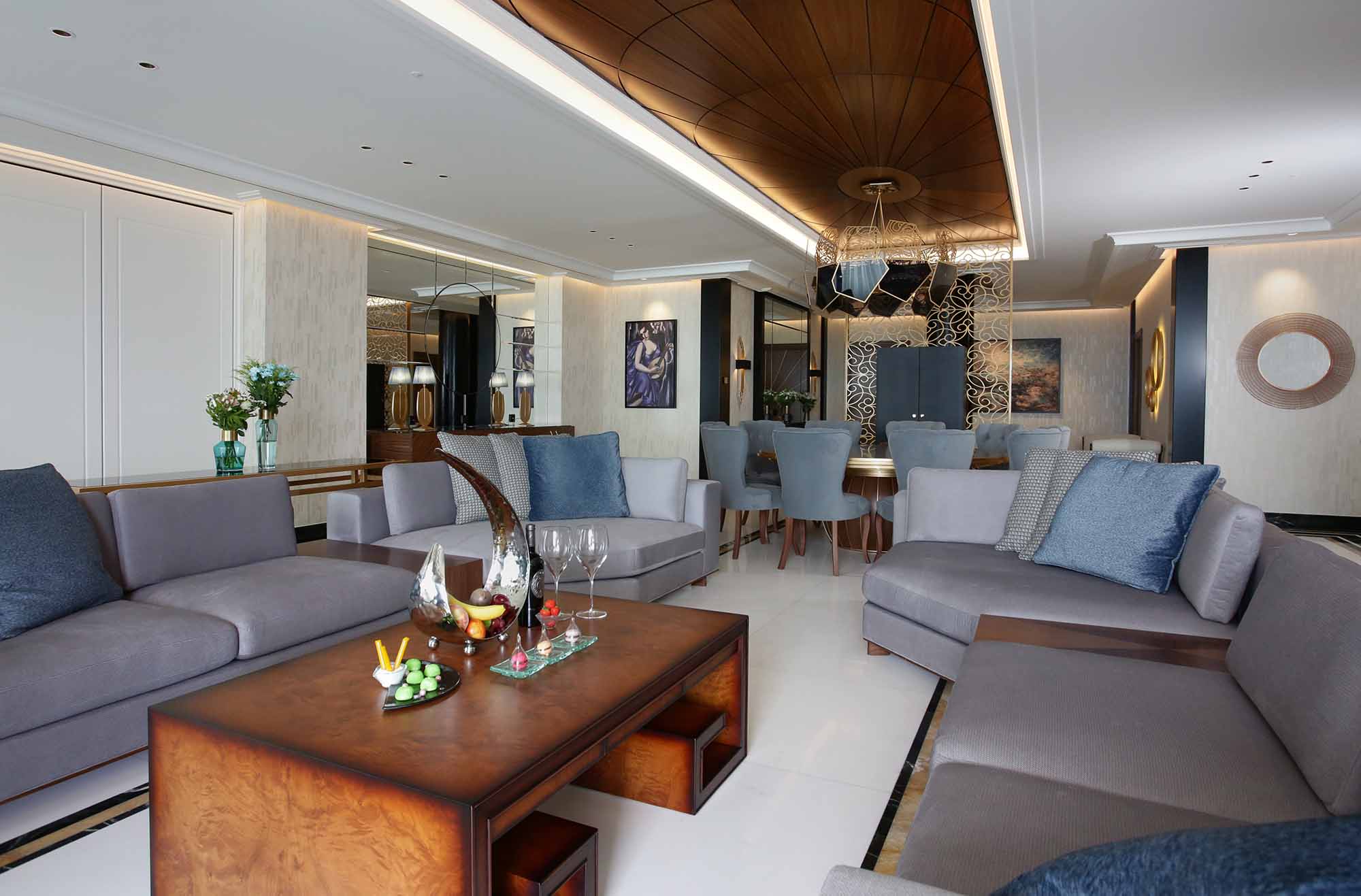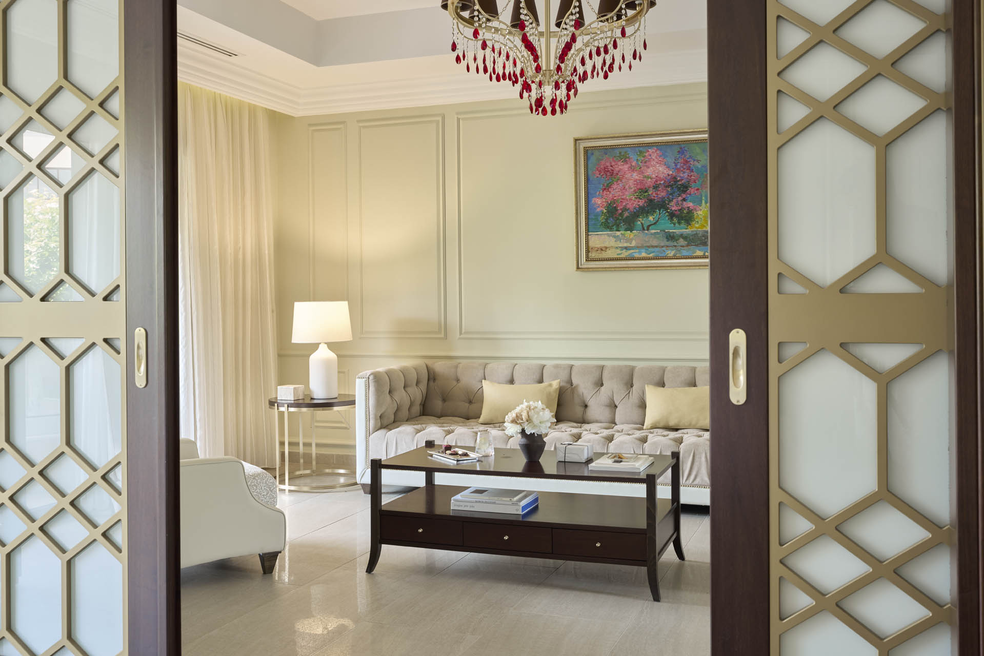 6 спален, 4 гостиные комнаты (одна из них с обеденным столом), ванные комнаты, террасы, панорамный вид на море, VIP-трансфер на автомобиле Maybach из аэропорта, частный пейзажный бассейн с морской соленой водой, шезлонгами и зоной отдыха, частный доступ к Roof Garden с панорамным видом на море и частный бар (меню ресторана a la carte, закуски, коктейли, кальян), частная пляжная беседка с ежедневным обслуживанием, консьерж-сервис, план номера.