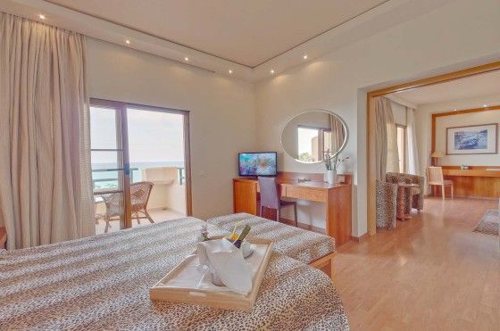 Executive suites - 2 комнаты (спальня и гостиная), ванная комната с гидромассажем, бан-ные халаты, терраса, раскошная мебель, вид на море (из некоторых сюит). Размещение - до 4-х человек.