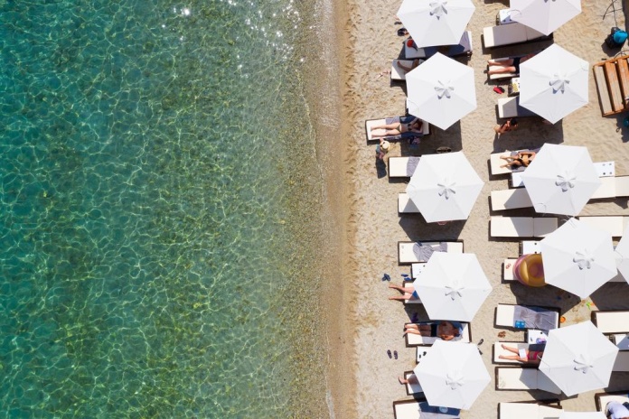 песчаный пляж в 10 м (лежаки и зонтики — бесплатно)
