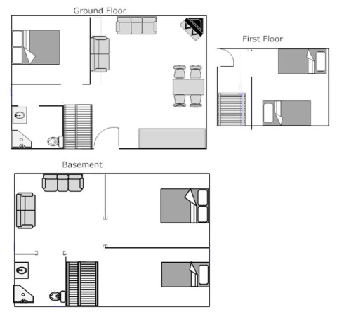 На 1 этаже – спальня с 2-мя односпальными кроватями, оборудованная кухня: холодильник, тостер, кофемашина Nespresso, электрочайник, микроволновая печь, электрическая духовка; гостиная, столовая, спутниковое телевидение, бесплатный Wi-Fi, ванная комната (оборудована для инвалидной коляски).