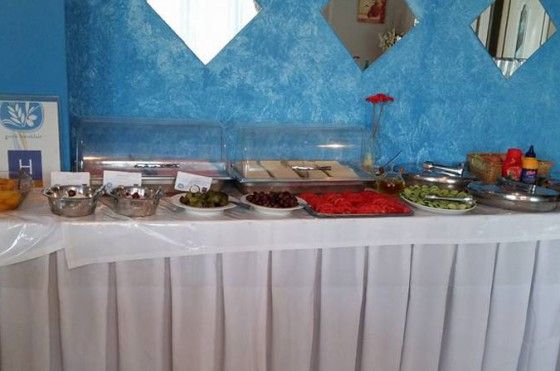 Зал для завтраков, бакр у бассейна, центральный бар.