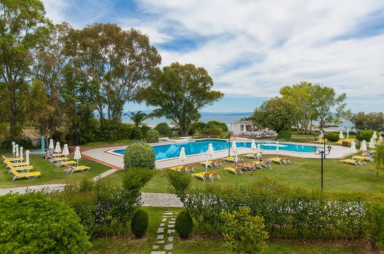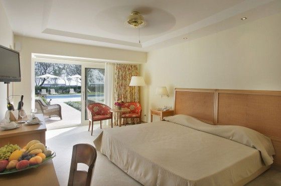 Отель располагает фешенебельными номерами с изысканным интерьером. Все номера с балконом/террасой с великолепным видом на сад/бассейн и Торонейский залив.