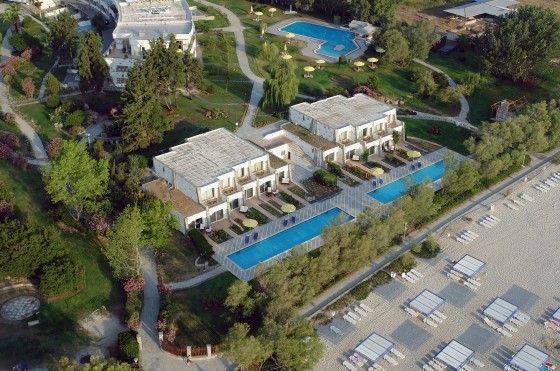 Расположены на 1-ом этаже, с общим бассейном на 7 сюит и большой террасой с видом на Торонейский залив, садик. Большая, совмещённая с гостиным уголком, спальня, 2-ая спальня, гардеробная, большая ванная комната (ванна с джакузи, отдельным туалетом и биде, банные халаты, тапочки, фен, набор для душа, весы), 2-ая ванная комната (душевая), хамам, центральный кондиционер с индивидуальным пультом управления, телефон, телевизор с жидкокристаллическими экранами (спутниковые каналы, российский канал), DSL интернет-соединение, мини-бар (за доплату), сейф (бесплатно), круглосуточная служба обслуживания номеров, вечерний сервис. Есть сюиты с сообщающейся дверью.