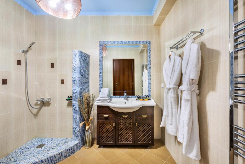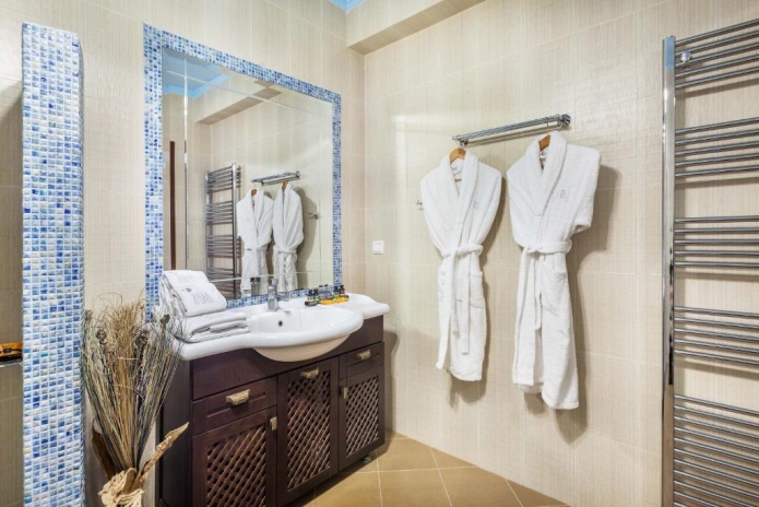 собственный песчаный пляж в 120 м (лежаки и зонтики — бесплатно)