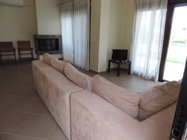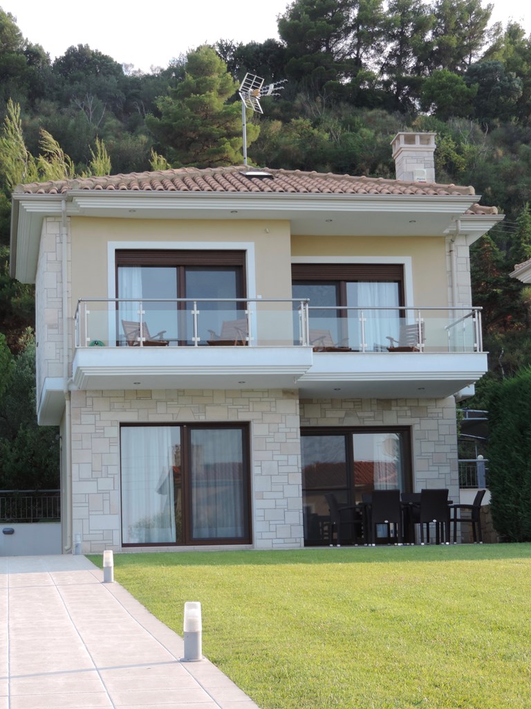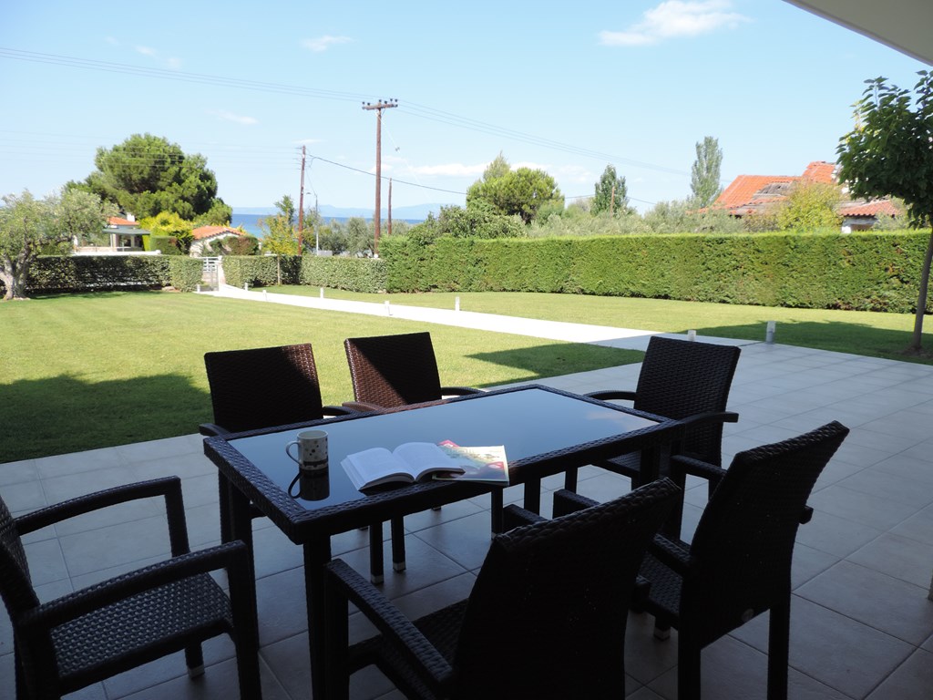 Вилла находится между поселками Криопиги и Полихроно, в 1,5 км от центра последнего, в 90 км от аэропорта Салоников.