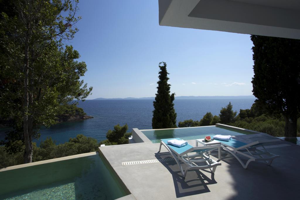 Во всех виллах есть кухня и собственный бассейн, балкон и обеденная зона.