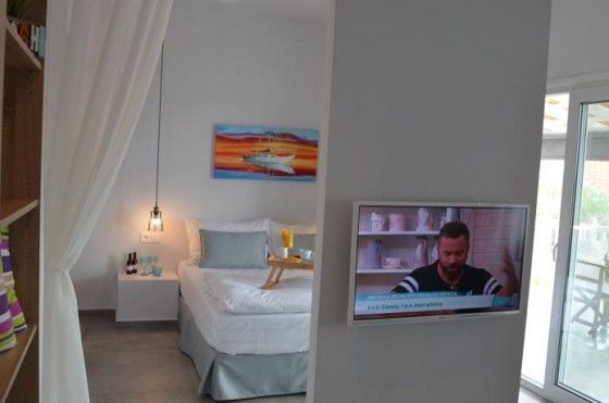 Всего 24 номера. Standard Suite (22-28 кв.м), Junior Suite (28-32 кв.м), Grand Suite (42 кв.м), Top Floor Suite (32-38 кв.м), Family Room Villa Maria (25 кв.м), Garden House 1 Villa Maria 1 (30 кв.м), Garden House 2 Villa Maria 1 (18 кв.м). В номерах: оборудованный кухонный уголок (электрическая плита с 2-мя конфорками, электрочайник, посуда), кондиционер, холодильник, бесплатный Wi-Fi интернет, телевизор, ванная комната (душ), фен (по запросу, на рецепции), меблированный балкон/терраса. Standard Suite Двуспальная кровать и раскладной диван или 2 односпальные кровати. Junior Suite Двуспальная кровать, за занавеской диван, который раскладывается в двуспальную кровать или в 2 односпальные кровати. просторный балкон. Grand Suite Просторный салон, раскладной диван, отдельная спальня с двуспальной кроватью королевских размеров. Top Floor Suite Особый дизайн, расположены на верхнем этаже отеля, великолепный вид на Эгейское море и побережье Ситонии. Большой балкон (50 м2) с шезлонгами и обустроенной зоной для приготовления барбекю. Одна комната с кухней и двуспальной кроватью, вторая комната (или отделена дверью или занавеской), раскладной диван или 2 односпальные кровати. Garden House 1 Villa Maria 1 Расположен в отдельном домике. Отдельный домик. Кухня, двуспальная кровать, 2 односпальные кровати и диван. Garden House 2 Villa Maria 1 Расположен в отдельном домике. Кухня, двуспальная кровать и диван. Studio Villa Maria 2 Дополнительно в кухне есть духовка. Двуспальная кровать и односпальная. Family Room Villa Maria 2 Дополнительно в кухне есть духовка. Двуспальная кровать и BunkBed (или двуспальный диван-кровать).