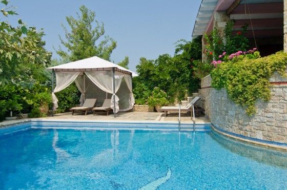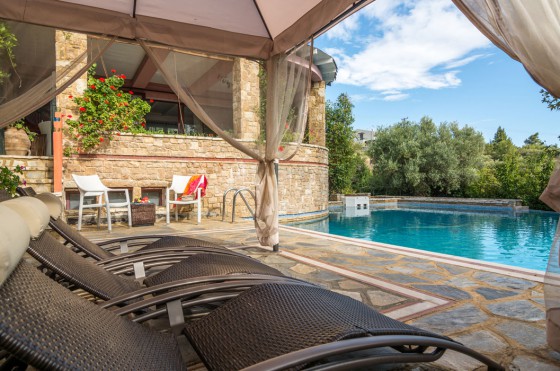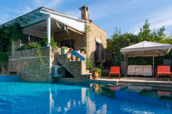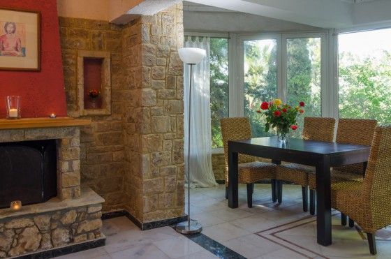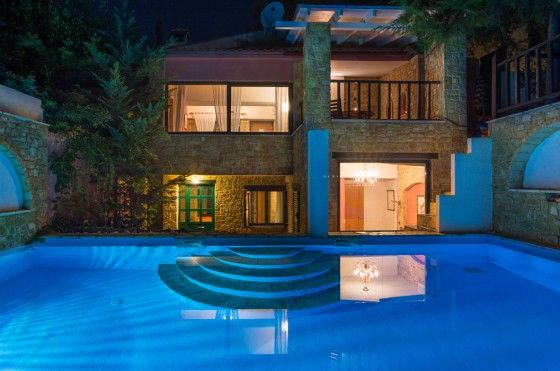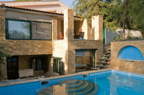Villa Athina (365 кв.м) Роскошная вилла. Комфортные условия проживания. 7 спален, 3 гостиных, 2 каменных камина, 2 оборудованных кухни, 5 ванных комнат и 2 WC, 2 веранды, 2 частных бассейна. Кондиционер, спутниковое телевидение, CD плейер, фен, беспроводное подключение к интернету, пульт управления внешними воротами, паркинг на 3 машины. Возможное размещение – до 12-14 человек.