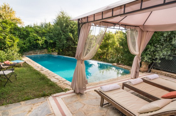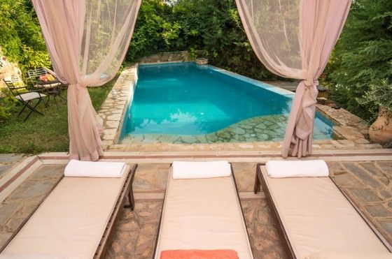 Villa Erato (100 кв.м) Идиллический отдых в окружении восхитительной природы Роскошь, удобство и уединение. Салон, каменный камин, 2 спальни, оборудованная кухня, 2 ванных комнаты (с душем), отдельный бассейн (24 кв.м.). Кондиционер, спутниковое телевидение, CD плейер, фен, беспроводное подключение к интернету, пульт управления внешними воротами, паркинг для 1 машины. Возможное размещение - до 4 человек.