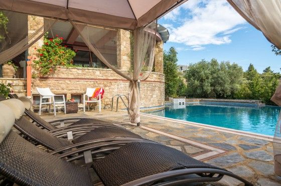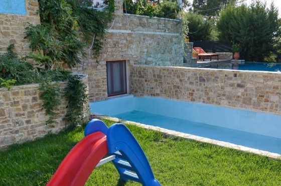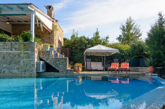 Villa Nefeli (185 кв.м) Построена из камня, вид на море, индивидуальный бассейн. 2 салона, каменный камин, 3 спальни + дополнительная спальня в мансарде, полностью оборудованная кухня, 2 ванных комнаты и WC, отдельный бассейн (80 кв.м.). Кондиционер, спутниковое телевидение, CD плейер, фен, беспроводное подключение к интернету, пульт управления внешними воротами, паркинг на 2 машины. Возможное размещение - до 6 человек.