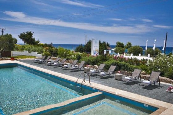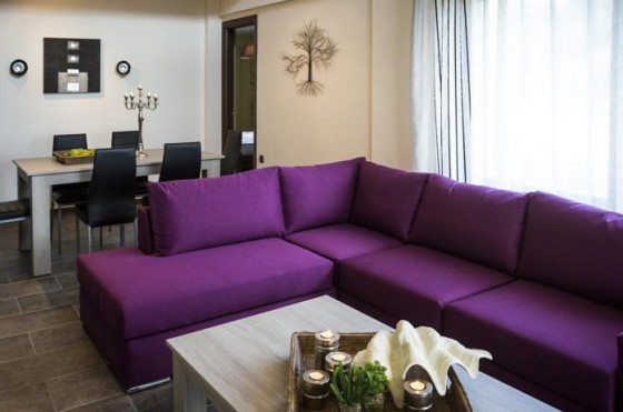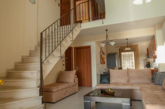 Suite Upper Floor (~65-73 кв.м., сад 300 кв.м) Гостиная зона с диваном, кухня, столовая зона, 2 спальни, душевая.
