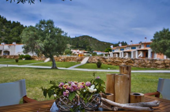 Double Bungalow Deluxe GV (~65 кв.м., сад 50 кв.м) Гостиная зона с диваном, кухня, спальня, душевая.