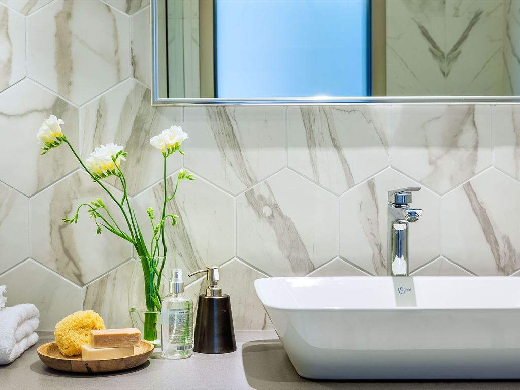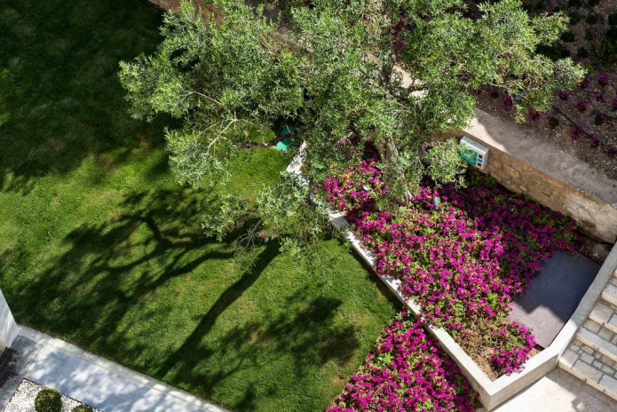 песчаный пляж в 10 м (лежаки и зонтики — бесплатно)