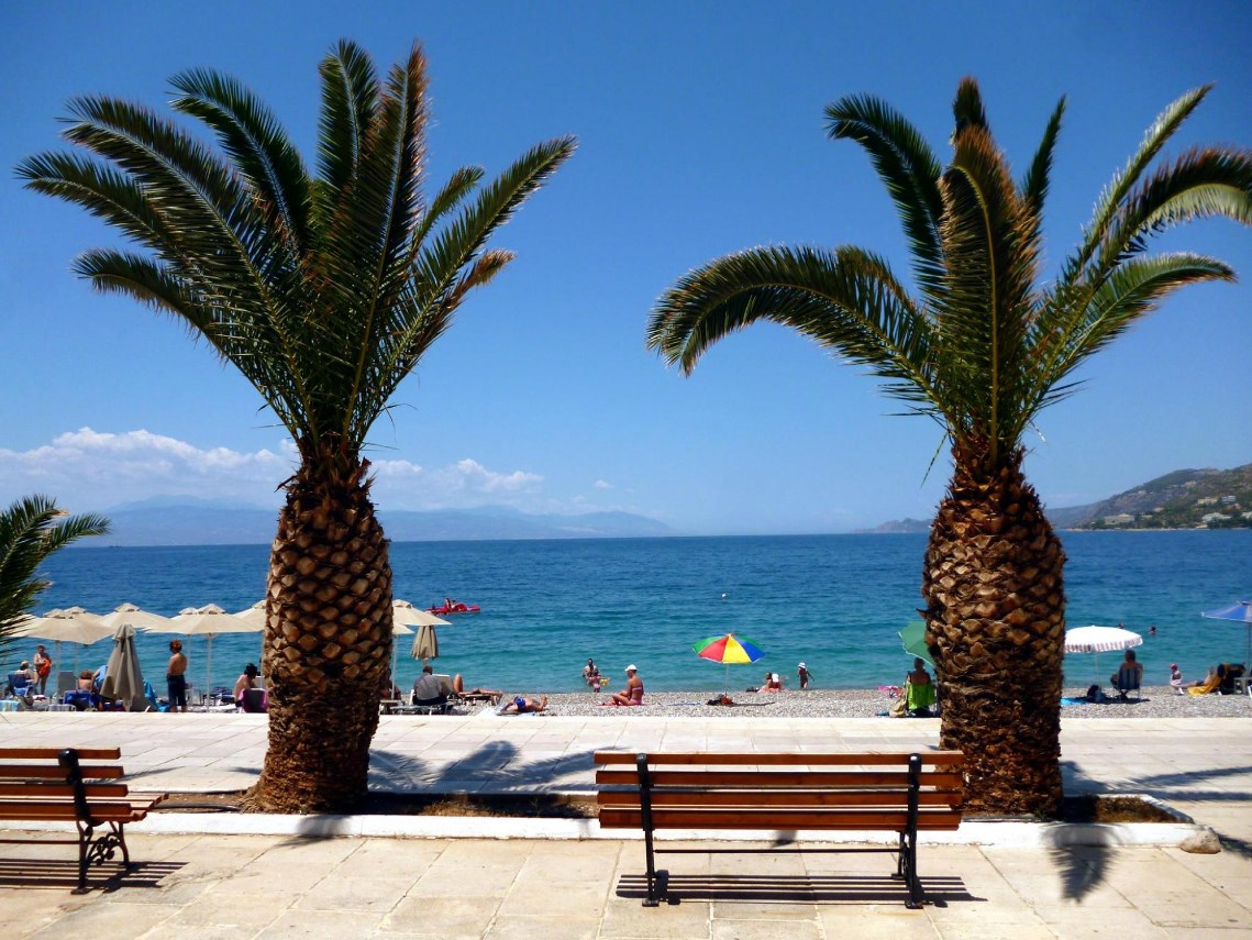 Пляж Лутраки отмечен Голубым флагом.