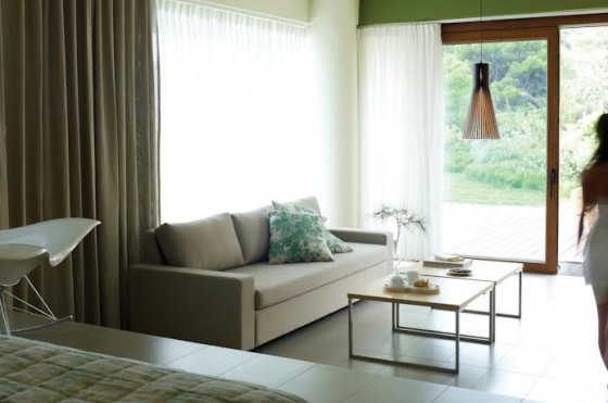 Всего в отеле 50 номеров. Во всех номерах: кондиционер, ЖК-телевизор, телефон, сейф, мини бар, косметические принадлежности. Garden View - номер с террасой, 45 кв.м. Family Garden Suite - 100 кв.м., 2 спальни, гостиная, веранда. Есть возможность присоединить к номеру комнату для няни с отдельным входом.(площадь общая всего номера 110 кв.м.) Superior SV - первый этаж, 41 кв.м. Junior Suite SV - второй этаж, номера с балконом, 41-46 кв.м. Executive Suite Forest and Sea View - 2 балкона (один с видом на лес, второй на море), открытого плана номер, 65 кв.м. Thalatta Suite- номер открытого плана, частный бассейн, 65 кв.м. Thalatta Maisonette - 3 спальни, 2 этажа, частный бассейн, 135 кв.м.