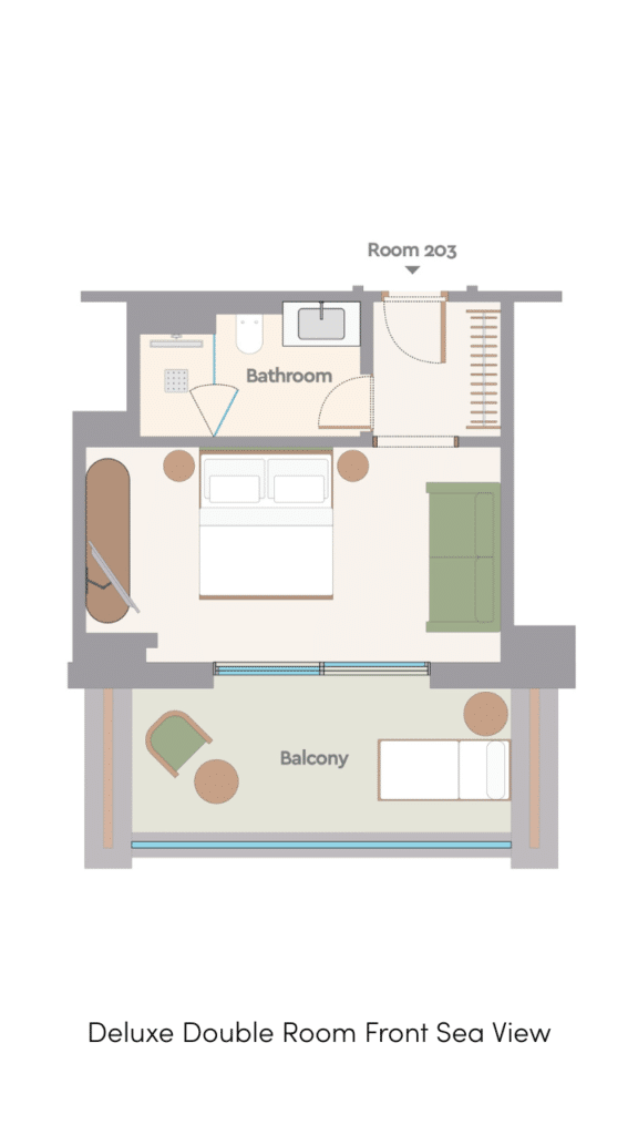 - Deluxe Front Sea View (25 м², макс. 2 чел.).