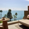 Двуспальная кровать king-size, диван-кровать, ванная комната с душем, меблированный балкон (шезлонг, кофейный столик, ковер, лаунж-кресла, обеденный стол для зоны отдых), боковой вид на море;